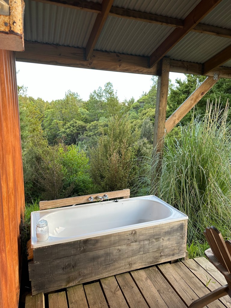 Wild Forest Estate offers 6 different accommodation options on their 35 acres of forested ground. The Airbnb I booked was the Tin Box – a converted shipping container. After arriving in the dark, we were greeted by our host Joanna, who took us, and our bags, up through the forest to our accommodation, on a golf cart (so don’t pack too heavy!) The cabin has no electricity for charging phones etc, but the lights are solar powered and there was a gas stove for cooking and boiling the kettle. There is an outdoor bath, hammock and fire and the night sky was filled with stars. You could even hear wild kiwis in the late evening!