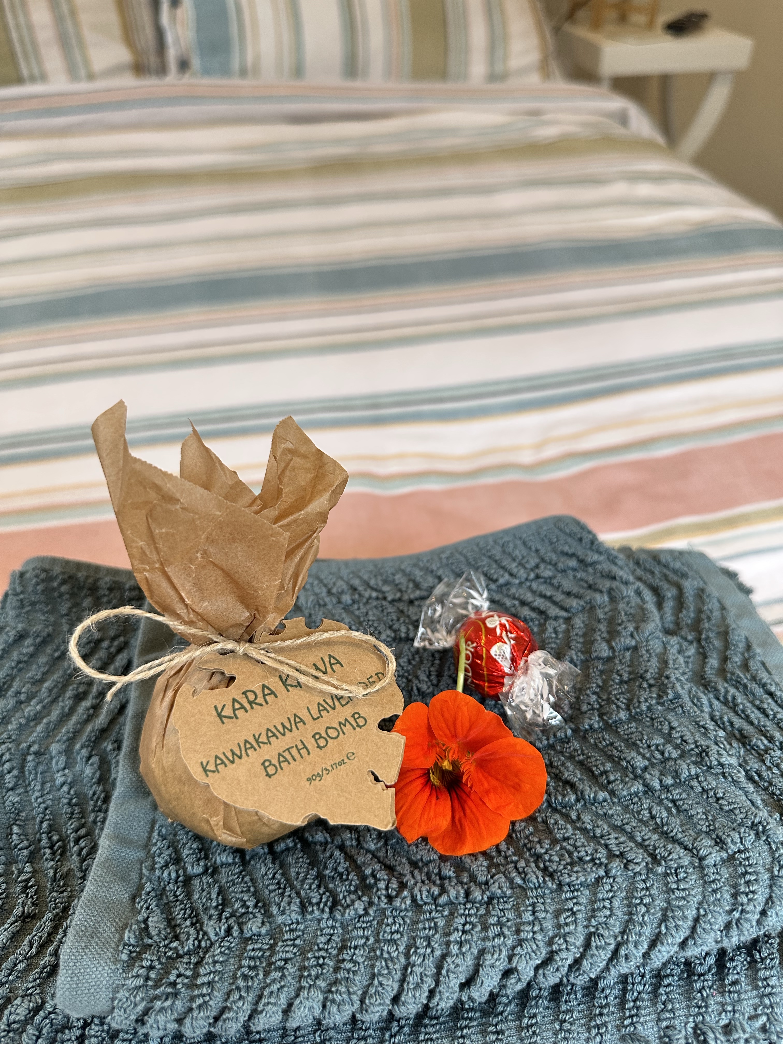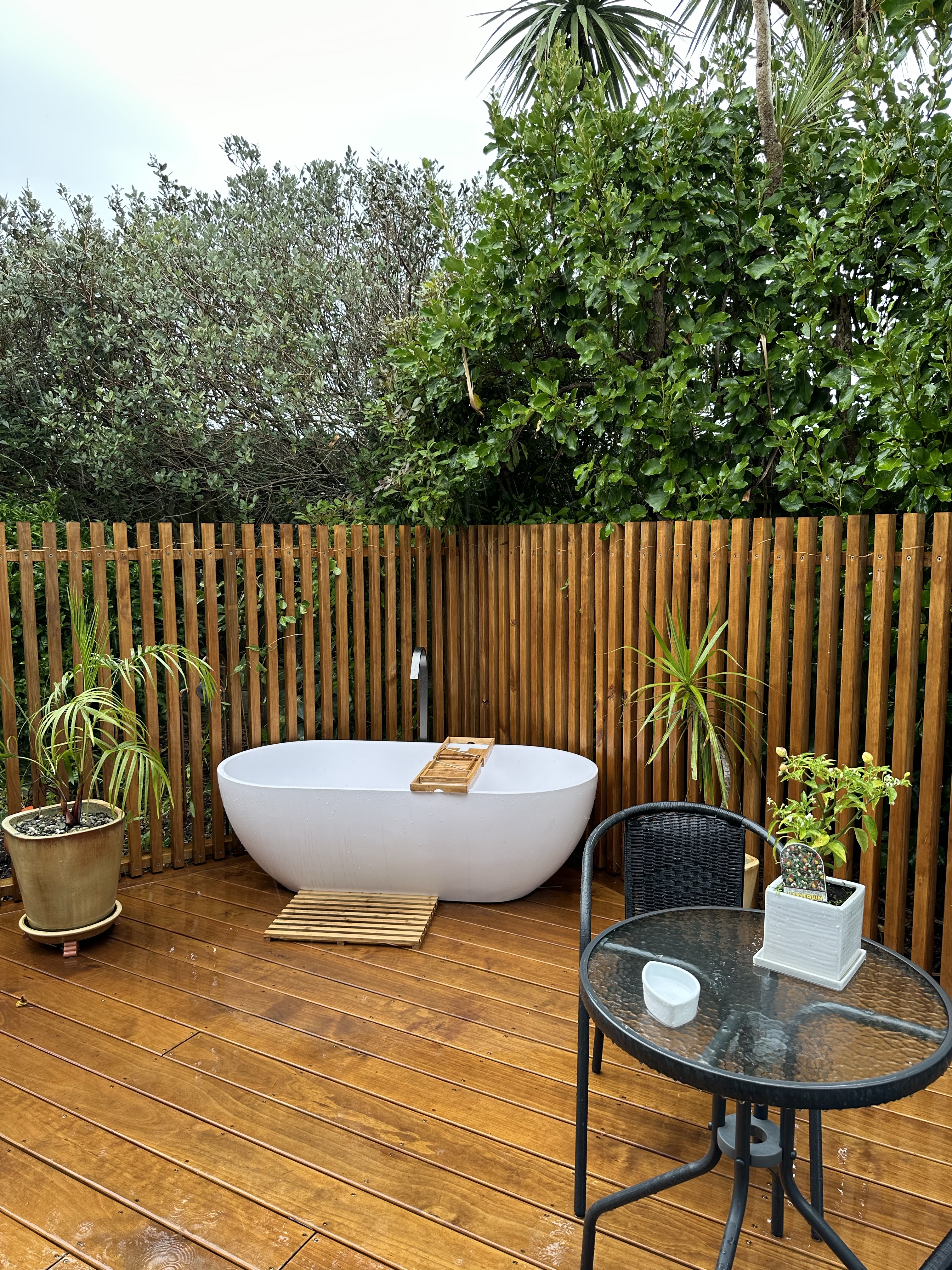 This Airbnb, a 15 minute drive from New Plymouth in Taranaki, was relaxing, peaceful and private. The host left robes, 2 bath bombs for the outdoor bath, chocolates, coffee, a wide variety of tea and 4 mini bottles of wine! Nearby to the Airbnb is the beach and a number of restaurants such as Serial Griller, which is located in a converted railway carriage!