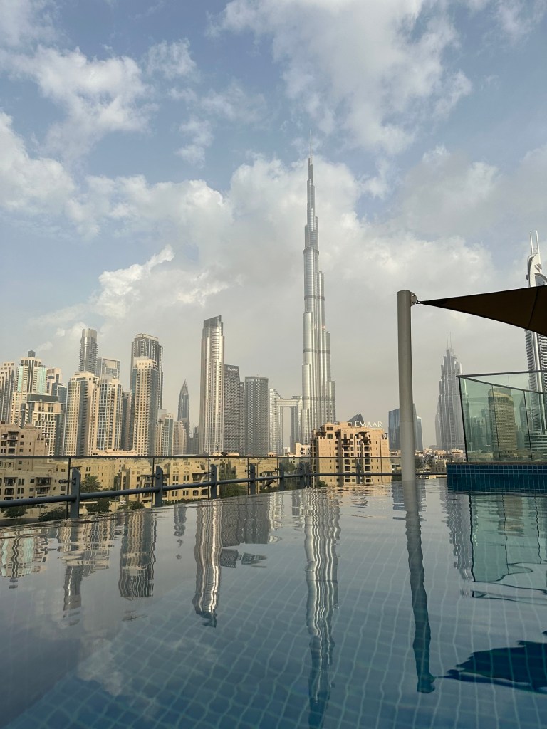 The pool was quiet when I visited it, with it being so early in the morning, so I therefore had it all to myself, with jaw dropping views over to the iconic skyscraper. The Burj Khalifa is the world’s tallest building at 828m – over half a mile high!