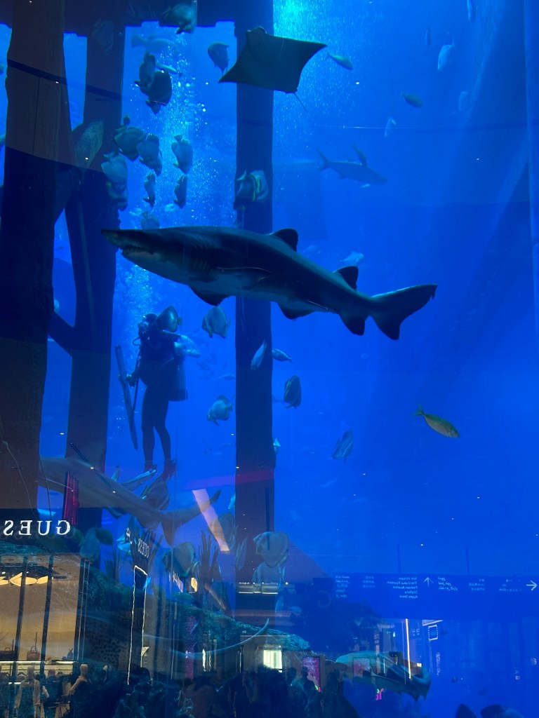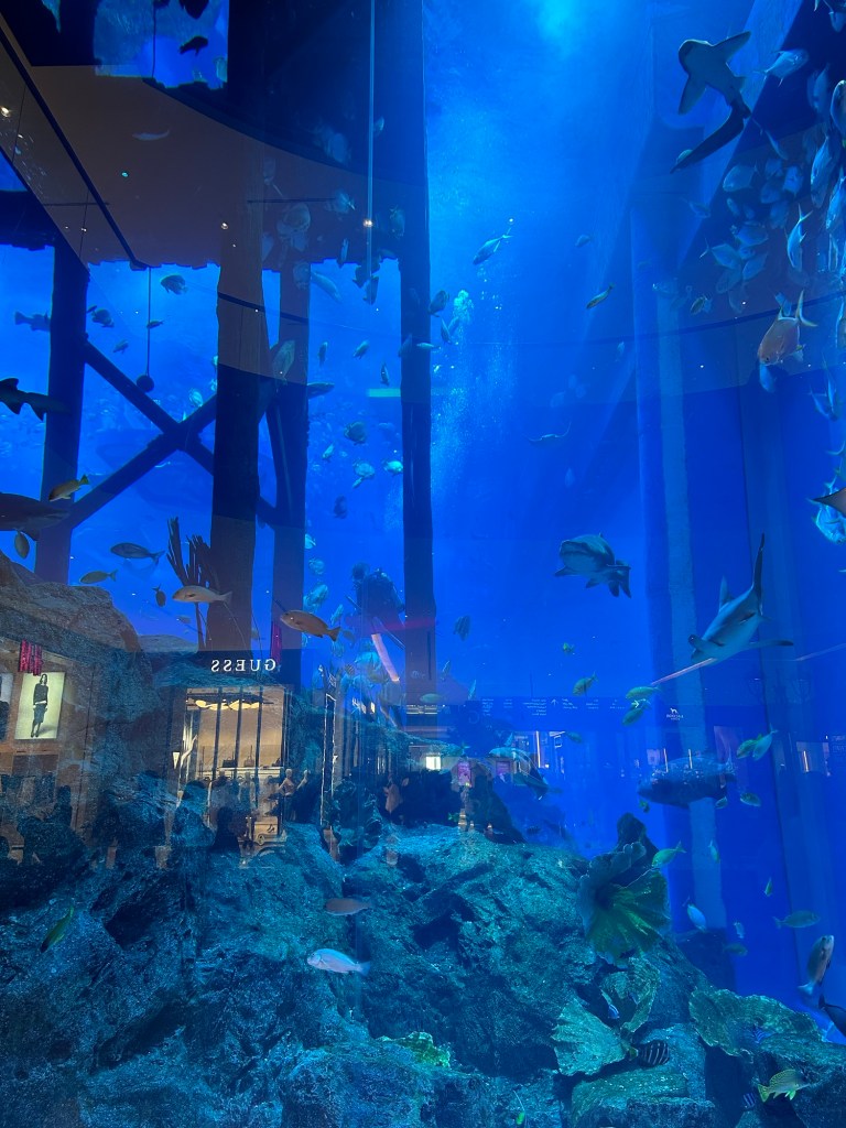 Dubai Mall – The Mall is the second largest in the world and has over 1200 stores and over 200 restaurants. I ate at Wagamama because it was one of the first places I wanted to head to when I got home to Scotland, but I could easily spend a week eating breakfast, lunch and dinner at the various eateries. Within the mall is an aquarium, a 24-meter tall waterfall representing pearl divers (pearl diving helped establish the city of Dubai) and an ice rink, to a name a few extras. I only spent a couple of hours here but could easily spend a couple of full days – with a healthy bank account. The observation decks of the Burj Khalifa are also accessed via the Dubai Mall.